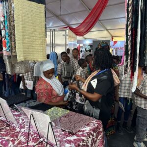 レース生地や小物販売のほか、協賛企業からレースの扇子などの商品もあります。